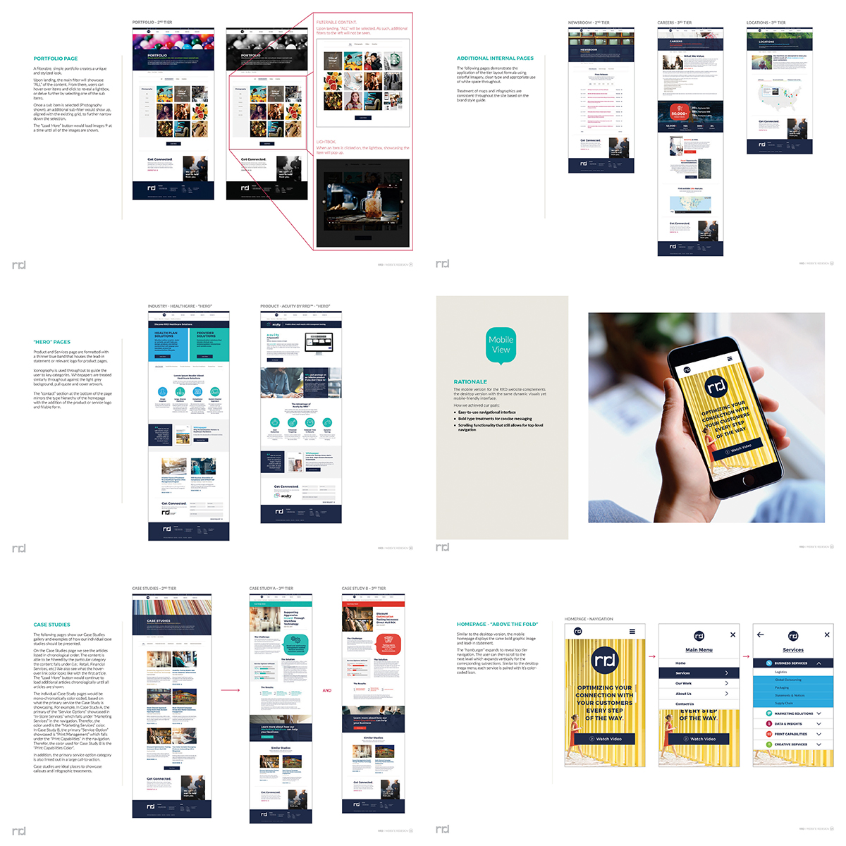 The final presentation was used as a showpiece, as well as shared with the developers to offer direction. Although they’ve done some updating since, RRD.com still utilizes my design, structure, wireframe, and nearly all of my original design choices.