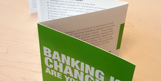 One of my early, corporate-environment projects, this particular piece was a fun challenge. With FIS' new branding, they wanted to elevate their marketing practices--including their leave-behinds. The challenge was that there was usually quite a bit of content that needed to go into these, and the marketing department wanted an alternative to some sort [...]